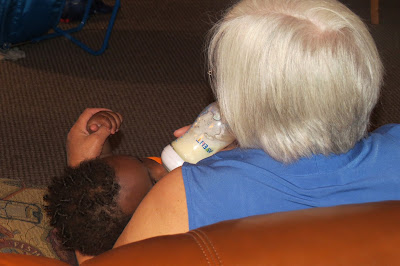 My Godmother Margie enjoyed her "bottle time" with Louis!